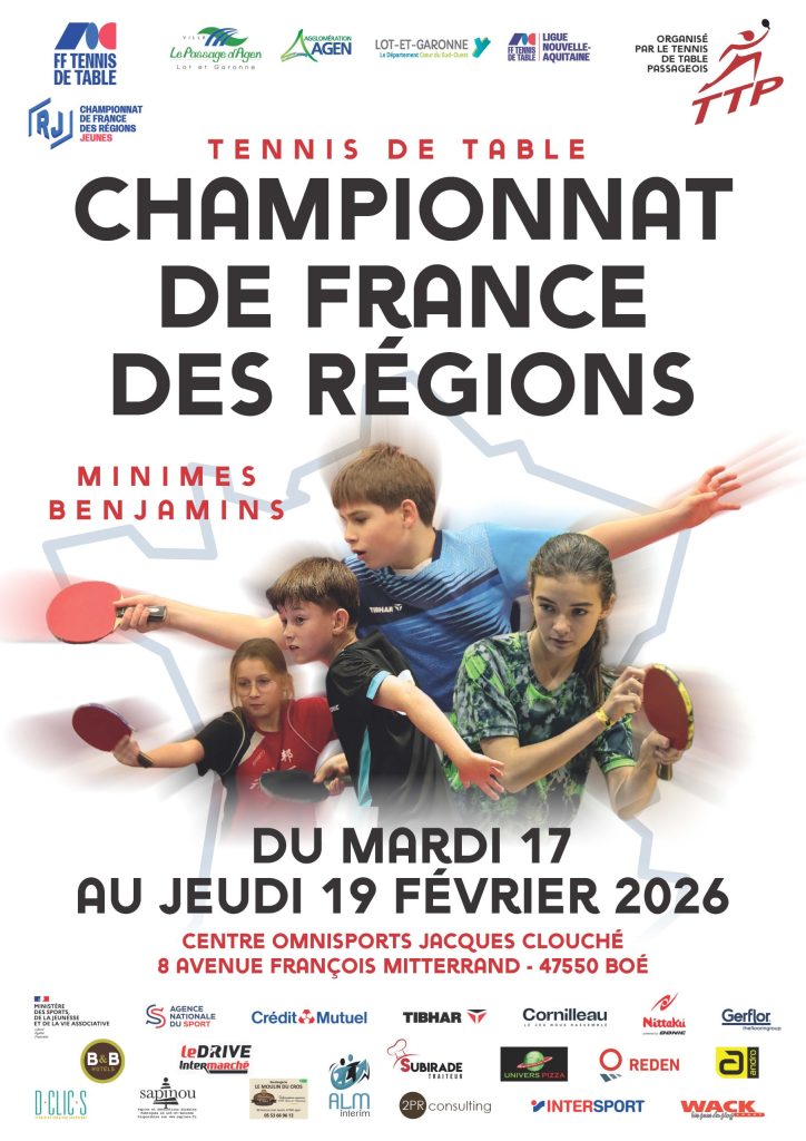 Les Championnats de France des Régions constituent une compétition nationale par équipes réunissant les meilleurs jeunes pongistes issus des ligues régionales de la FFTT. Cette épreuve met à l’honneur le travail de formation et de détection mené au sein des territoires. Organisés chaque saison par la Fédération Française de Tennis de Table, ces championnats permettent aux jeunes joueurs et joueuses des catégories benjamin(e)s et minimes de représenter leur ligue dans une compétition par équipes dynamique et structurée.
