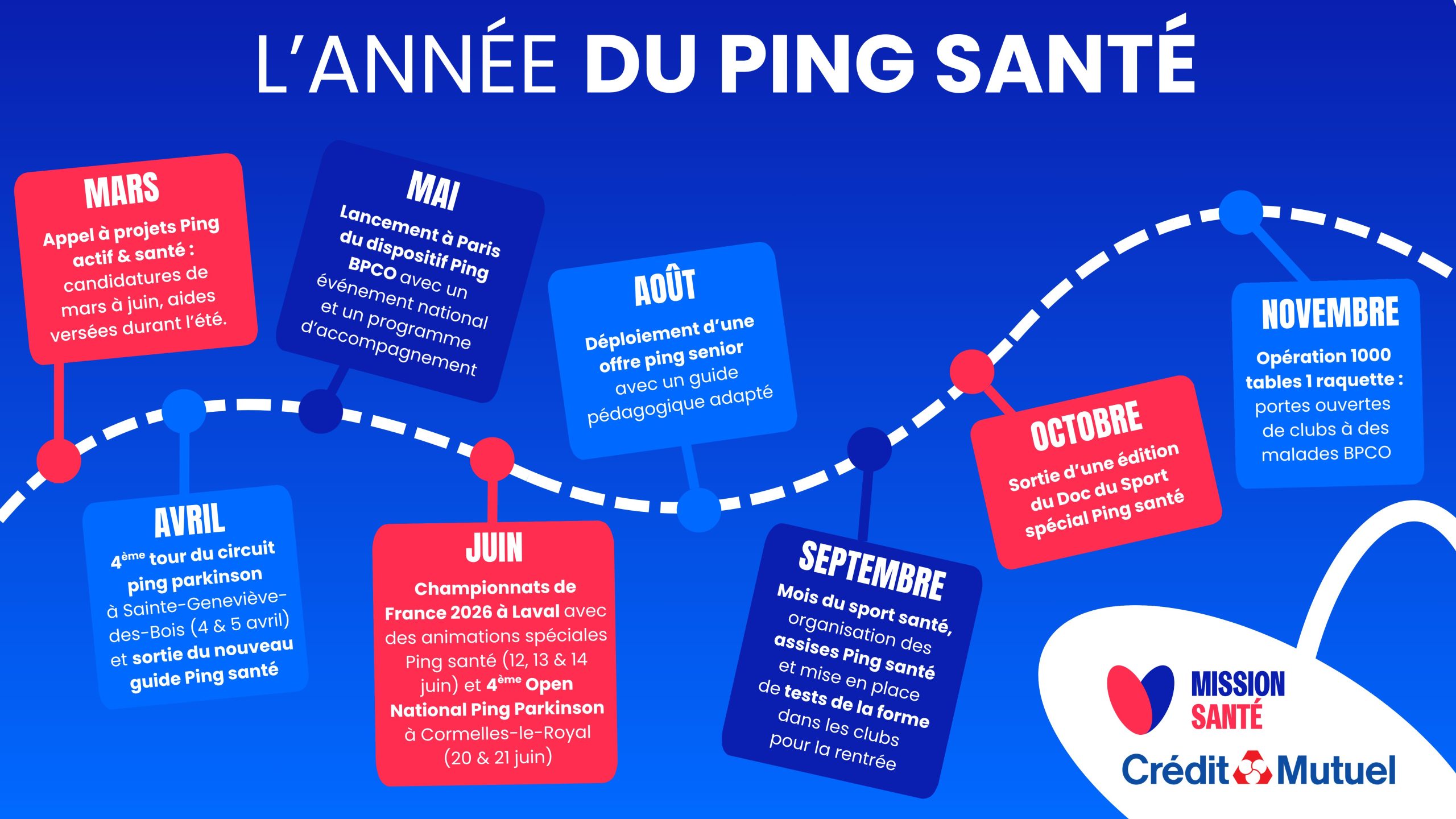 Tout au long de l’année 2026, grâce au soutien du Crédit Mutuel, la Fédération mettra à l’honneur le Ping santé en faisant connaître les bienfaits du ping pour la santé, en renforçant les actions des structures fédérales et soutenant les clubs à travers un appel à projets national.