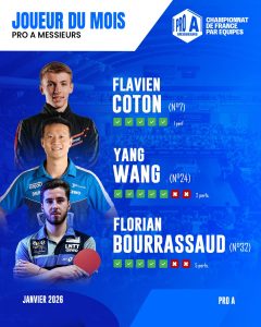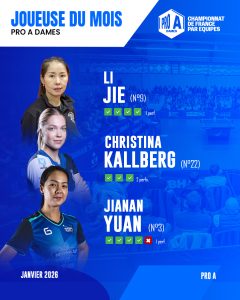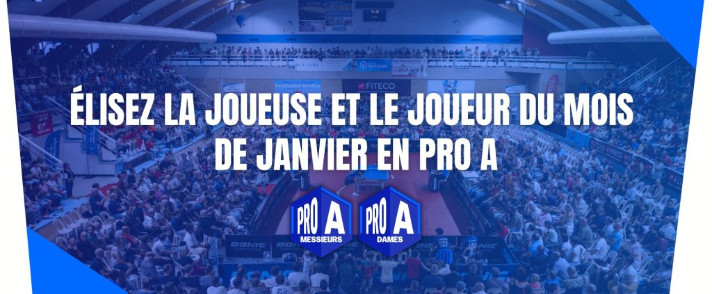 Comme depuis le début de l’année, nous vous donnons la possibilité d’élire la joueuse et le joueur du mois en Pro A. Depuis le début de la saison, nous avons la chance d’assister à des performances incroyables et de voir jouer les tous meilleurs pongistes de la planète. C’est donc le moment de mettre en lumière celles et ceux qui vous ont le plus impressionné(e)s au mois de janvier. Qui succéderont à Jianan Yuan & Yu Kayama ?