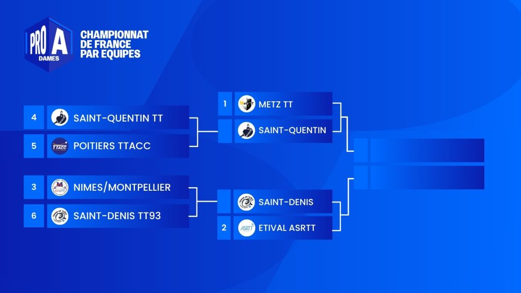 Les play-offs s’embrasent et les demi-finalistes sont désormais connus ! Qui de l’alliance Nîmes/Montpellier, du TT Saint-Quentin, du Metz TT ou de Saint-Denis TT93 rejoindra la finale ? Avant de répondre à cette question, retour sur des quarts de finale riches en surprises et en performances spectaculaires
