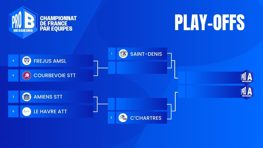 Avant de se projeter sur les demi-finales, dont les vainqueurs seront promus en PRO A, deux barrages devront être jouer pour déterminer les affiches de ce dernier carré. Amiens, solide 3ème de la saison régulière, affrontera Le Havre ; Courbevoie défiera Fréjus.