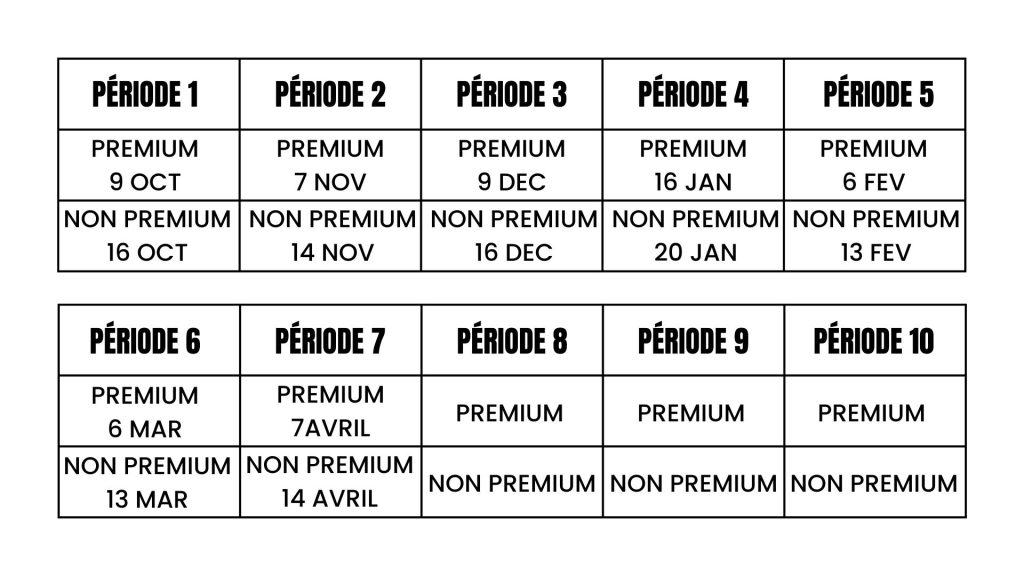 En plus du classement « NON PREMIUM » , Le Classement Mensuel « PREMIUM » , lui, vous est accessible sur l’appli mobile FFTT aux dates définies ci-dessous :