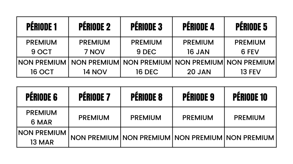 En plus du classement « NON PREMIUM » , Le Classement Mensuel « PREMIUM » , lui, vous est accessible sur l’appli mobile FFTT aux dates définies ci-dessous :