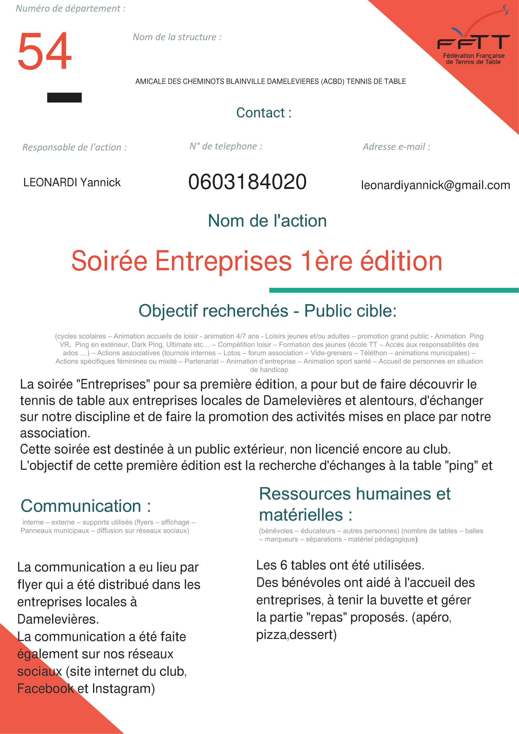 Nom de l’action :  Soirée Entreprises 1ère édition