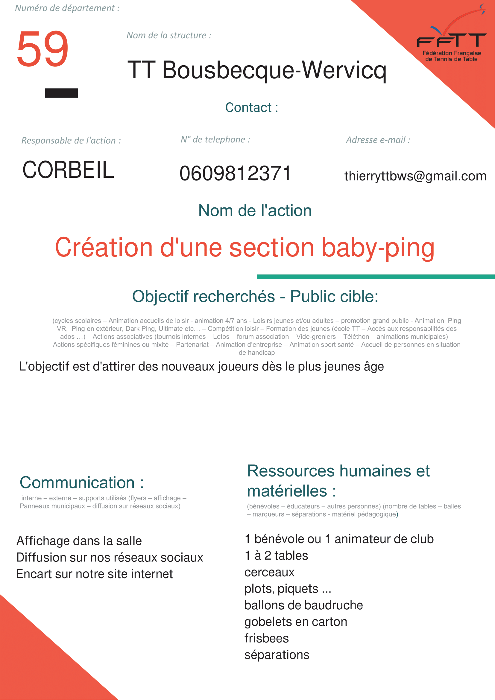 Après que la mairie ait accepté de nous donner un créneau supplémentaire nous avons pu ouvrir fin novembre une nouvelle section Baby-Ping.