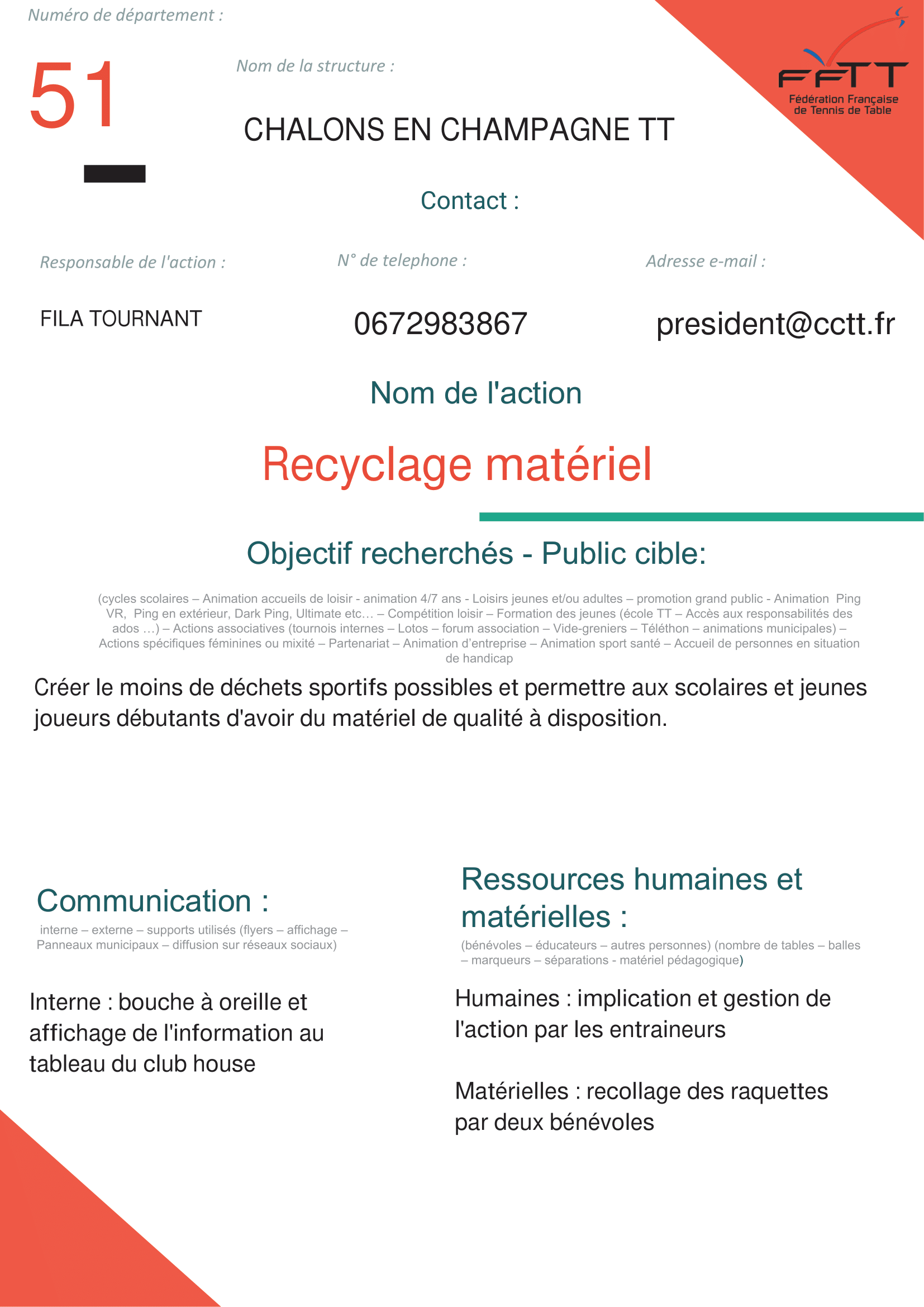 Nom de la structure : CHALONS EN CHAMPAGNE TT