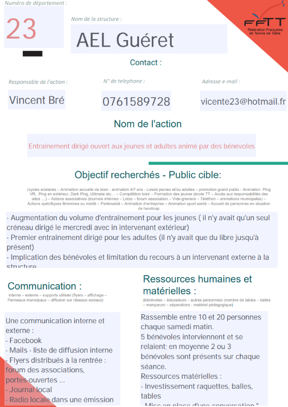 Nom de l’Action : Entraînement dirigé ouvert aux jeunes et adultes animé par des bénévoles AEL Guéret
