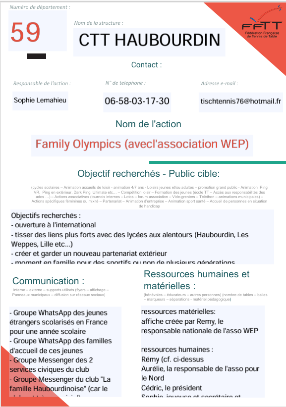 Nom de l’Action : Family Olympics (avec l’association WEP)