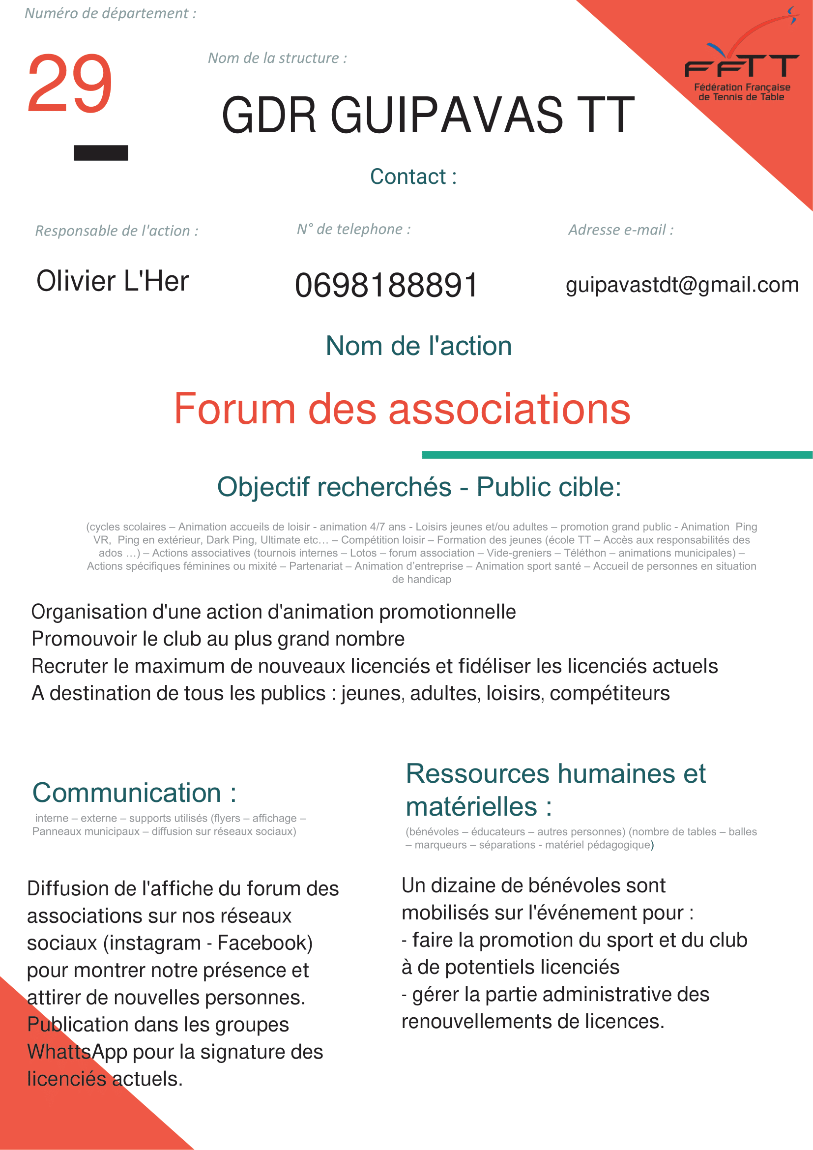 – Présence au forum des associations organisé par la ville de Guipavas.