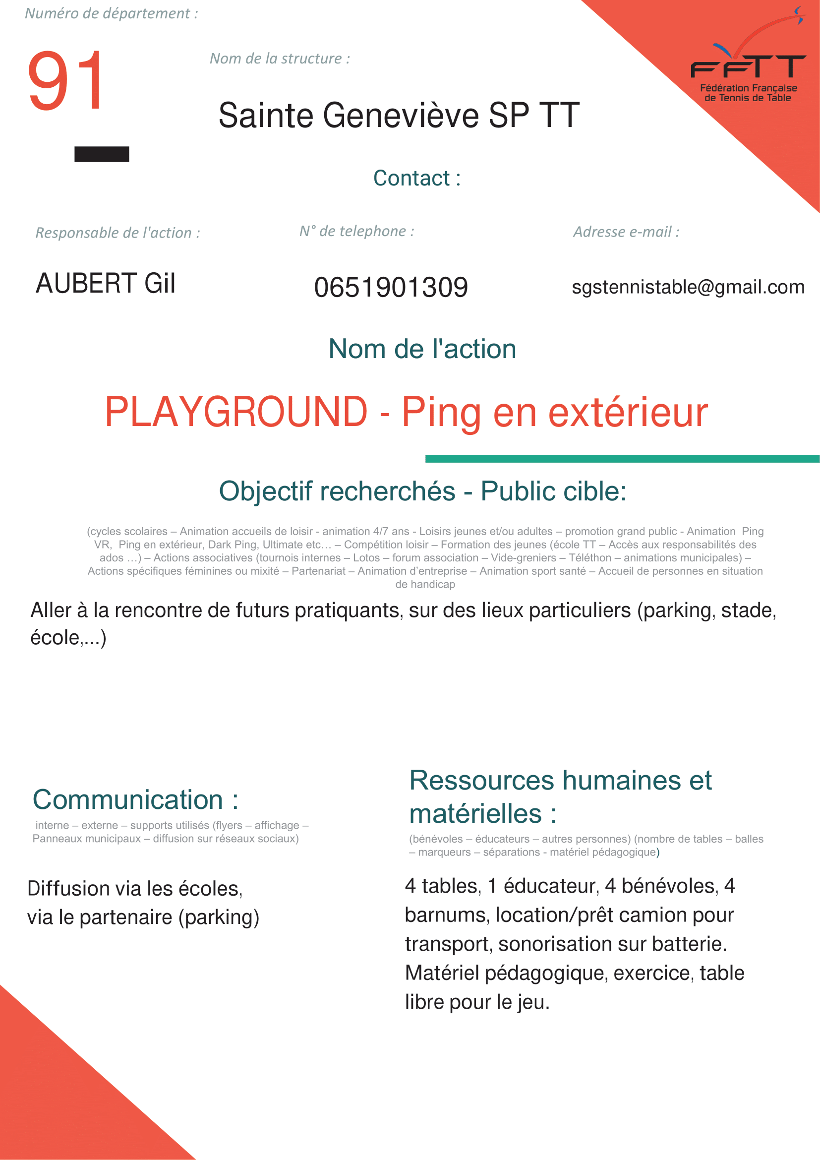 Saint Geneviève SP TT – Ping extérieur