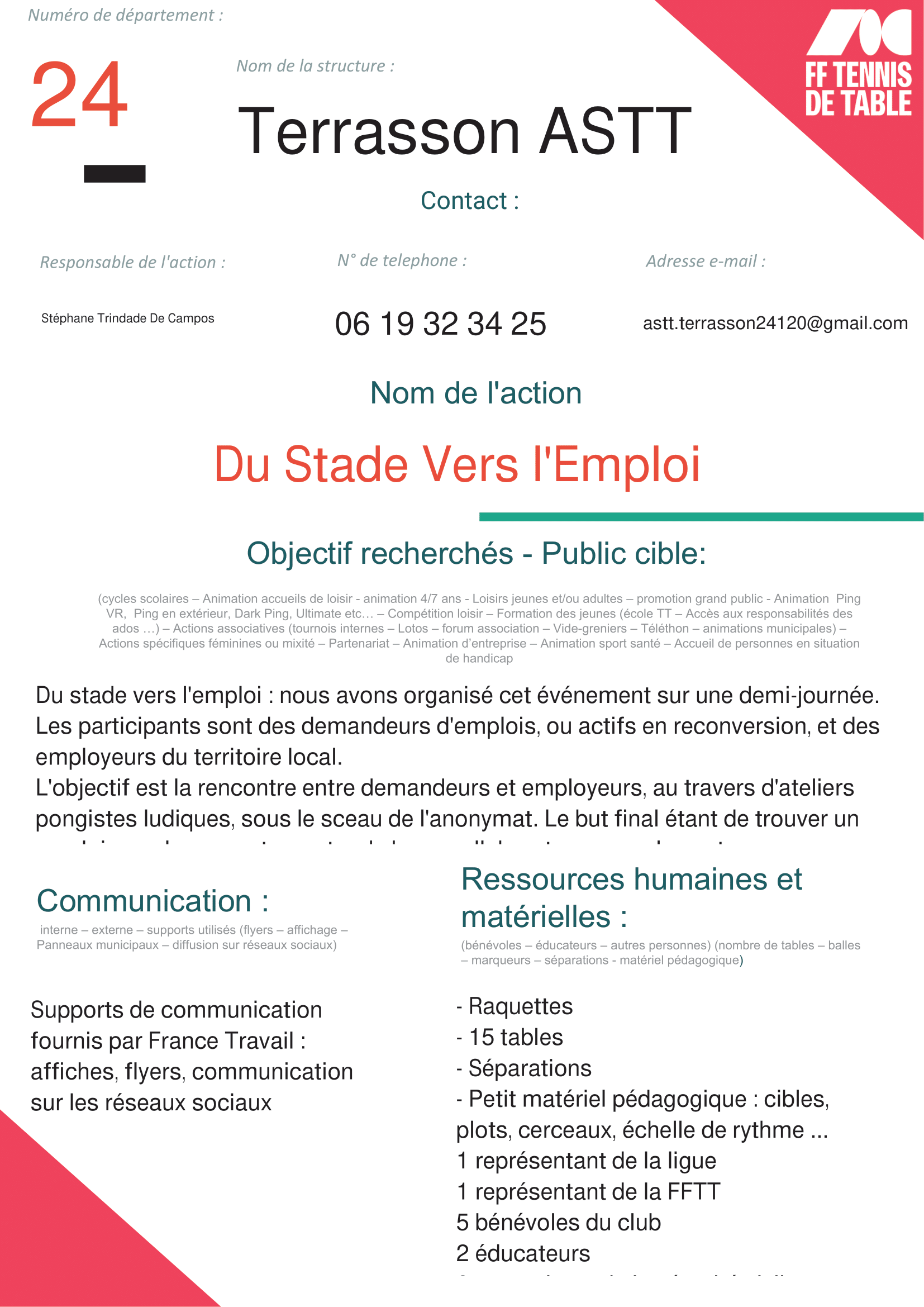 Nom de l’action : Du Stade Vers l’Emploi