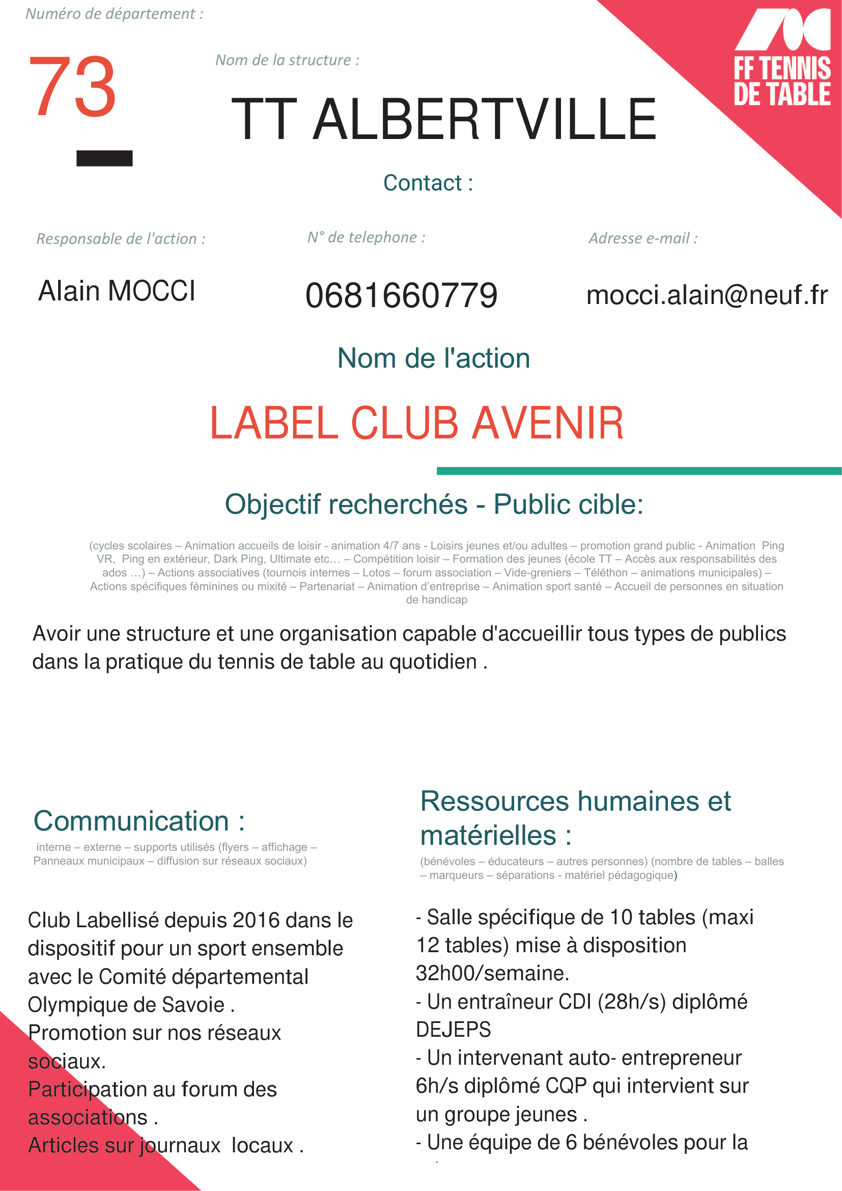 Responsable de l’action : MOCCI Alain