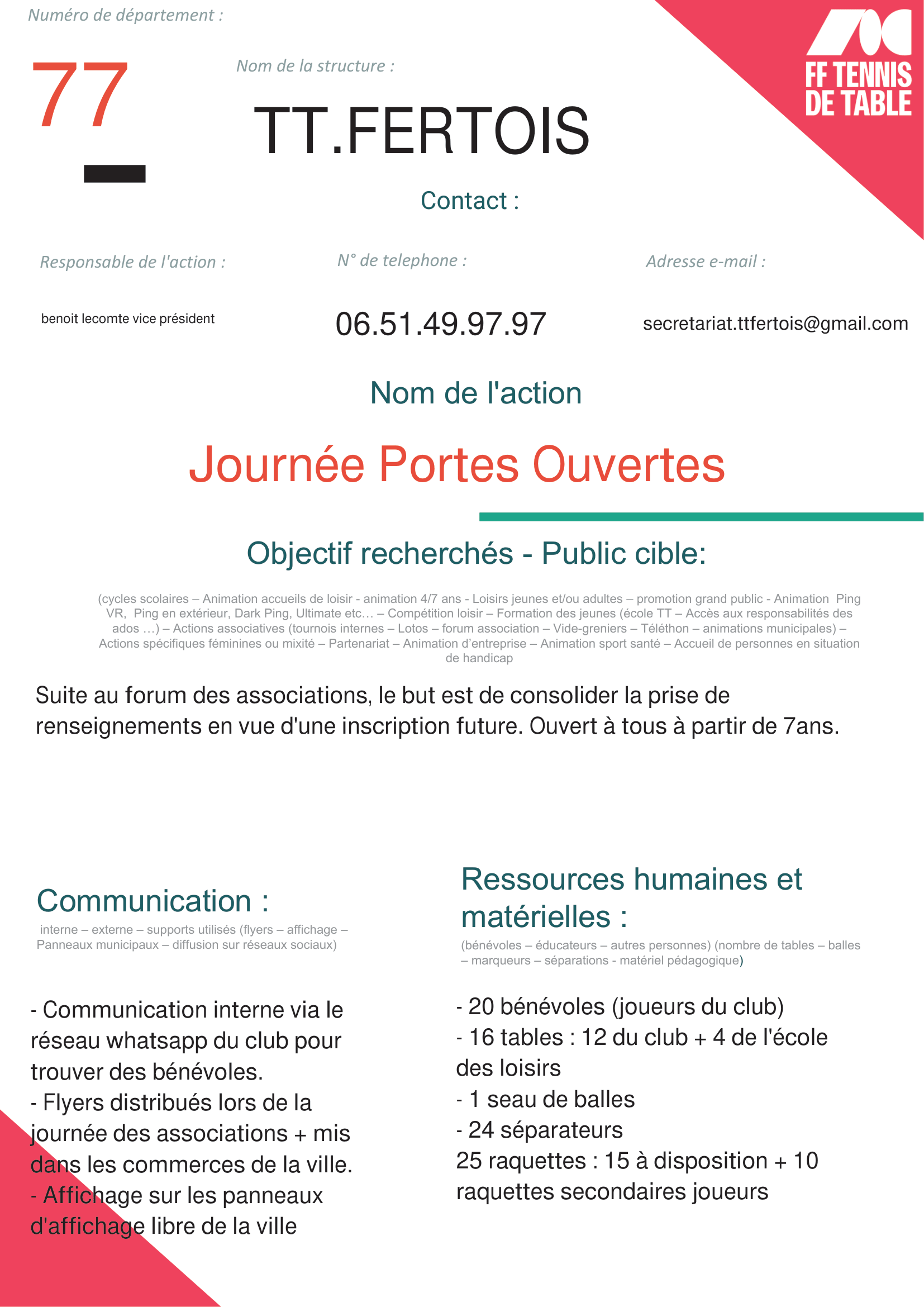 TT FERTOIS – Suite Journée Portes Ouvertes