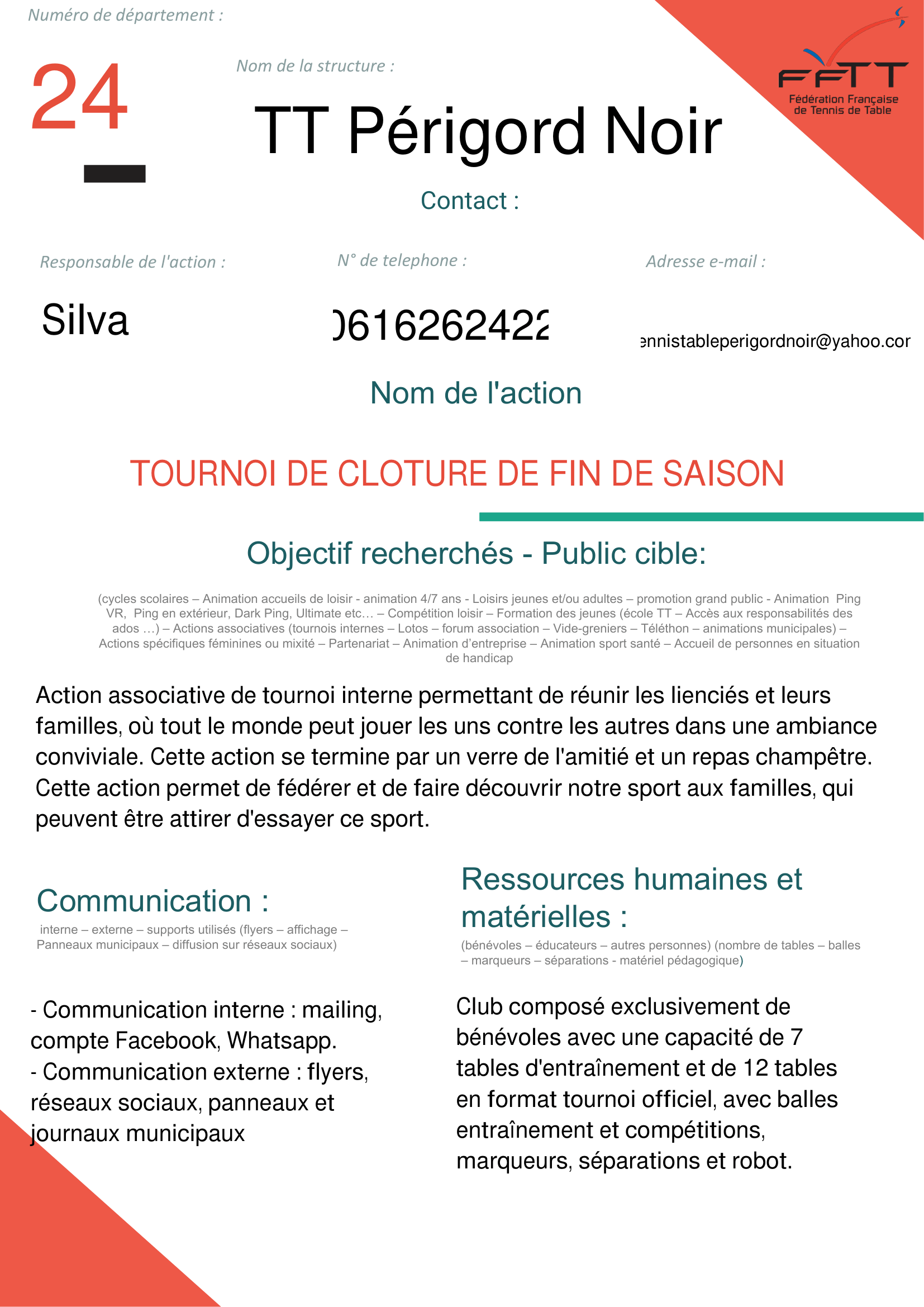 Nom de l’action : TOURNOI DE CLOTURE DE FIN DE SAISON
