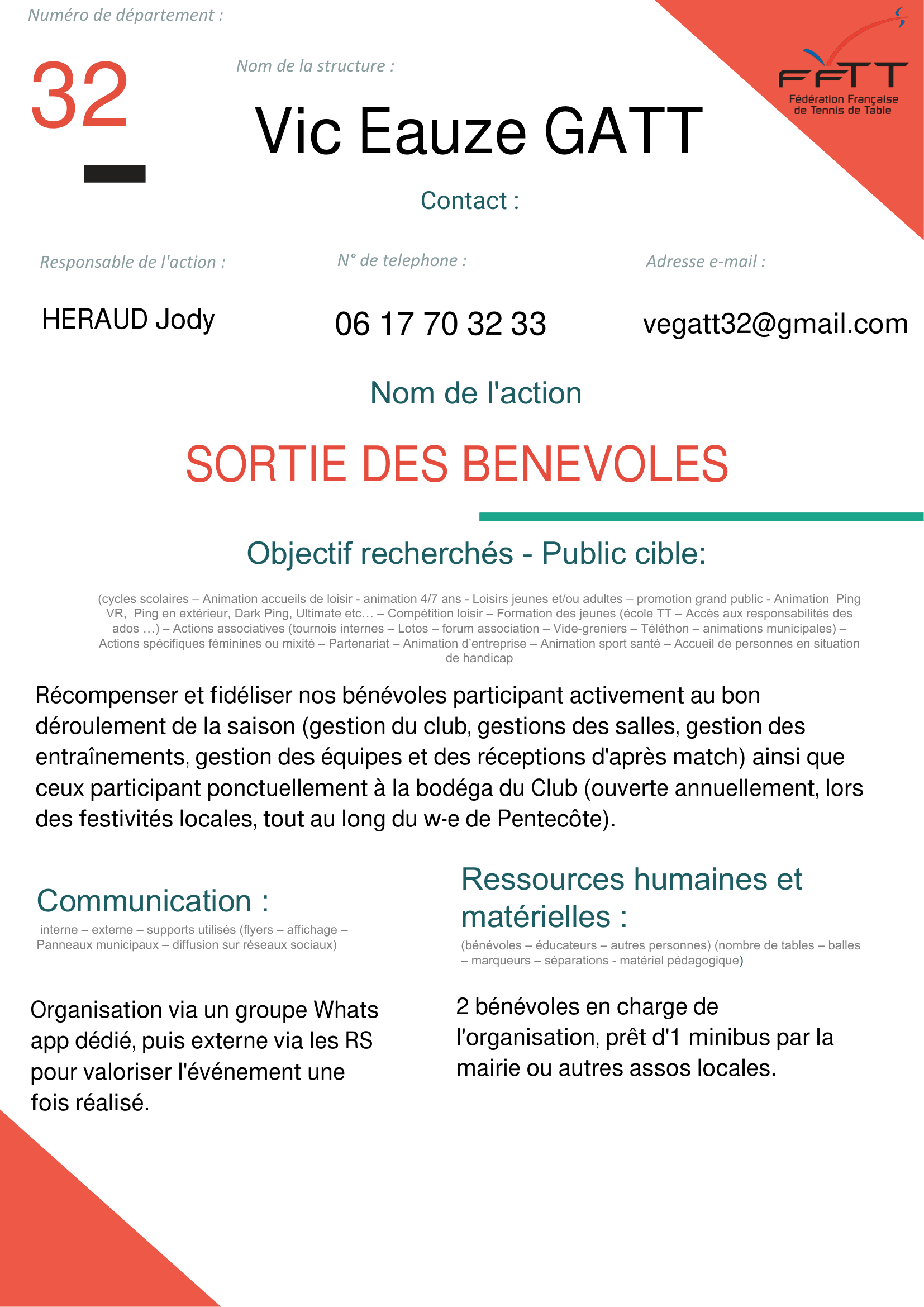 Très bonne cohésion des bénévoles, fidélisation des licenciés compétitions participants, promotion locale et auprès des joueurs des autres clubs pongistes du département.