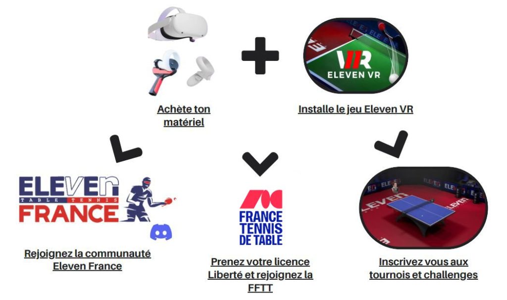 Le Ping VR est une pratique du Tennis de Table en réalité virtuelle. Equipé d’un casque VR spécifique et du jeu Eleven Tennis de Table développé et édité par la société américaine « For Fun Labs », vous pouvez jouer partout en intérieur dans un espace libre mais défini de 6m2 environ. C’est une véritable pratique du tennis de table encore plus immersive que vous ne pouvez l’imaginer.